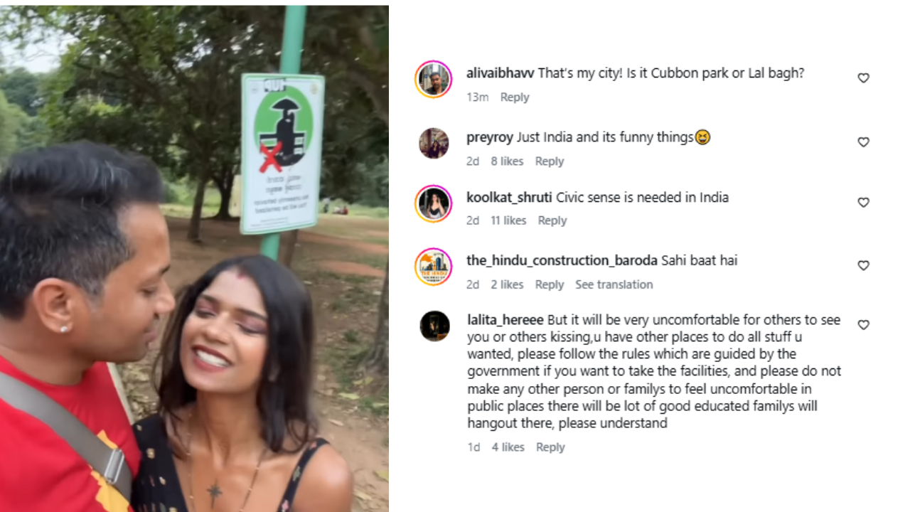 Influencer kisses husband in front of 'no kissing' board in Bengaluru's Cubbon Park; video goes viral