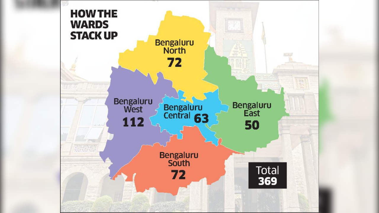 <p>At 369, the Greater Bengaluru Authority (GBA), the apex body that oversees the governance of Bengaluru, has the highest number of wards among the seven big cities in the country. </p><p>The GBA is one of three tiers in the new governance system in Bengaluru. The other two are the five new city corporations and the ward committees. The GBA, established on May 15, 2025, replacing the Bruhat Bengaluru Mahanagara Palike, became fully operational on September 2, 2025. The overall jurisdictional area of the GBA has remained unchanged at 712 sq km.</p><p>On Wednesday, the Karnataka government issued the final notification demarcating wards for the five city corporations. The five corporations will together have 369 wards, a sharp rise from the 198 wards the city had earlier. </p>.<p><strong>How the wards split </strong></p><p>Bengaluru Central City Corporation: 63 </p><p>Bengaluru North City Corporation: 72</p><p>Bengaluru South City Corporation: 72 </p><p>Bengaluru West City Corporation: 112 </p><p>Bengaluru East City Corporation: 50 </p>.<p><strong>227 wards in Mumbai</strong> </p><p>The civic body of Mumbai, the Brihanmumbai Municipal Corporation (BMC), has 227 electoral wards or constituencies for civic elections. The BMC, India's richest municipal corporation, has a jurisdictional area of 437.71 sq km. The 227 electoral wards are spread across 24 administrative wards. </p>.<p><strong>250 municipal wards in Delhi </strong></p><p>In the national capital, the Municipal Corporation of Delhi (MCD) covers an area of 1,397.3 sq km and is divided into 250 municipal wards. </p><p>In 2022, the Delhi Municipal Corporation (Amendment) Act was passed and the three previous corporations — North Delhi, South Delhi, and East Delhi municipal corporations — were unified into a single entity. The number of wards was restricted at a maximum of 250, down from the previous total of 272. The MCD area is divided into 12 administrative zones.</p>.<p><strong>144 wards under Kolkata Municipal Corporation </strong></p><p>The area under the Kolkata Municipal Corporation (KMC) is divided into 144 electoral wards spread over 206 sq km.</p><p>The number of wards went up from 75 to 144 after several former municipalities in peripheral areas were merged with the KMC in 2015. The wards are grouped into 16 boroughs.</p>.<p><strong>200 wards spread over 426 sq km in Chennai</strong> </p><p>The Greater Chennai Corporation (GCC) has a total of 200 wards spread across 15 zones. </p><p>The 15 zones are grouped under three administrative divisions: North, South, and Central. The jurisdiction of the GCC is spread over 426 sq km. The territorial area increased from 174 sq km in 2011 after 42 smaller local bodies were merged into the corporation. </p><p>The Greater Chennai Corporation, earlier called Madras Corporation, is the oldest municipal institution in India established in 1688. </p>.<p><strong>Hyderabad and Ahmedabad</strong></p><p>The Greater Hyderabad Municipal Corporation (GHMC), covering an area of nearly 650 sq km, is divided into 150 wards. The GHMC is administratively divided into six zones, which are further split into 30 circles and then into 150 wards.</p>.<p>The civic body of Ahmedabad, the Ahmedabad Municipal Corporation, covers an area of 505 sq km and is divided into 48 wards. Each of the 48 wards is represented by four corporators, resulting in a total of 192 seats in the general body. For administrative purposes, the city is divided into seven zones.</p>