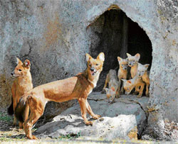 <p>Seven dhole pups, born on November 19 last year, were released for public viewing at the Mysore Zoo on Thursday. Dhole, Cuon alpinus or wild dog, is a highly endangered species and is difficult to breed in captive conditions.<br /><br /></p>.<p>So far, Chennai and Vishakhapatnam zoos have successfully bred the dholes. With help and guidance from these zoos, dhole was successfully bred in Mysore Zoo for the first time, according to a press release from Zoo Executive Director B P Ravi.<br /><br />The Mysore Zoo received a pair of adult dholes from Arignar Anna Zoological Park, Chennai, in 2009. <br /><br />The dholes are social animals. In the wild, both parents and offsprings help in raising the newborns. <br />They burrow the ground to make a natural den. After a gestation period of 60 to 62 days, the mother dhole delivers an average of four to six pups in a litter. The newborns suckle for two months and eat the regurgitated food from the parent till six months.<br /><br />According to the press release, the Zoo authorities noticed mating behaviour in mid-September and pregnancy was diagnosed by 35th day based on the visible changes in the female. <br /><br />Since the pair did not show any signs of burrowing its own den, an artificial den was prepared for breeding.<br /><br />CCTVs installed<br /><br />Three holding rooms and an artificial den was constructed for confining the animals for the next two months. The flooring was modified for easy cleaning and CCTV cameras were installed in the den and holding rooms for round-the-clock monitoring. <br /><br />The floor of the den was fitted with wooden planks to keep the newborn pups warm. The dholes are very shy animals and get excited easily. <br /><br />Therefore, the keeper passage was covered with plastic sheets to prevent visible disturbances and visitor path was diverted away from the dhole enclosure.<br /><br />The mother dhole was fed twice a day with special nutritional supplements to help in lactation and to withstand the stress of parturition. <br /><br />On November 19, the female dhole delivered seven pups after five hours of labour. The male dhole kept a constant watch outside the den. During feeding, it used to wait till the female had its meal. <br /><br />From the third day onwards, the male dhole started to go inside the den and occasionally lick its pups. The pups –– four male and three female –– are now 65 days old and weigh 2.8 to 3.3 kg.<br /></p>