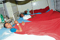 <p>According to delayed reports reaching here, four members of the same family are being treated at the Crawford Hospital in the town.<br /><br />Biligamma, her husband Eraiah and three others had been to Shirangala village in Somwarpet taluk following death of his relative. They took ill due to alleged food poisoning. Subsequently, Biligamma was treated at Kodlipet and Yasalur Hospitals and then she was shifted to a private hospital in Hassan where she died on Tuesday.<br /><br />Doctors attending on four others said they are out of danger. Meanwhile, MLA H K Kumaraswamy visited the hospital and enquired the health of the family members. <br /><br />He told reporters that the taluk administration has taken serious note of the case and three nurses are camping in the town to distribute medicines to the needy to prevent any eventuality.</p>