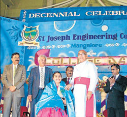 <p>Various cultural performances as well as formal programme marked the decennial celebrations of annual college day of St Joseph Engineering College which was established in 2002, with the motto of “Service & Excellence.”<br /><br /></p>.<p>Addressing the gathering, ALF Engineering Pvt. Ltd. (Nasik) CMD Joseph D’Souza, the chief guest, called upon the students to make best use of the facilities available to them. <br /><br />Presiding over the programme, Mangalore Diocesan Bishop Rev Dr Aloysius Paul D’Souza who is also the president of SJEC, went down the memory lane and thanked SJEC Director Fr Valerian D’Souza for all his good deeds in the last 10 years.<br /><br />On the occasion, Karthik Madhyastha N (who secured second rank in Mechanical Engineering) and Shreeya Shenoy P (who secured fourth rank in Electronics and Communication Engineering) for the academic year 2011 were felicitated. <br /><br />Later, the stage was set on fire by the students through their magnificent cultural performances.<br /><br /></p>