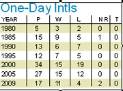 <p>The team physio and the experts have pointed out that the injured players do not get sufficient time and rest for recuperation. This is because the Indian cricket calendar is heavily burdened with international matches. <br /><br />India plays more international cricket than any other country in the world. Here’s a scorecard of the major injuries suffered by players: <br />Sachin Tendulkar: There is hardly any part on his body that has not been <br />ravaged by injury. <br /><br />Over the last 20 years he has suffered elbow, ankle, back, hamstring and groin injuries.<br />Gautam Gambhir: A groin injury forced him to skip the tri-series in Colombo , Sri Lanka earlier this month. <br /><br />S Sreesanth: The paceman suffered a spate of injuries after the Kanpur Test against South Africa in 2008 and ever since he is out in the cold. <br />Rudra Pratap Singh: A hamstring injury bogged him down in early 2008 for <br />three weeks after the Adelaide Test against Australia. Missed the subsequent tri-series. <br />Ishant Sharma: A big toe and finger injury kept the Delhi pacer out of the first two Tests against South Africa in early 2008. <br /><br />Munaf Patel: The right-arm pacer <br />has suffered ankle and back injuries since 2007, reducing him to an <br />occasional figure in the squad. <br /><br />Year Played Won Lost Drawn Tied<br />1980 3 1 1 1 -<br />1985 7 0 2 5 -<br />1990 7 1 2 4 -<br />1995 3 1 0 2 -<br />2000 6 2 3 1 -<br />2005 8 5 1 2 -<br />2009 3 1 0 2 - <br /><br /></p>.<p><br /><br /><br /><br /><br /><br /><br /><br /><br /><br />Twenty 20 Intls <br />Year Played Won Lost N R T<br />2006 1 1 0 0 0<br />2007 8 5 1 1 1<br />2008 1 0 1 0 0<br />2009 8 3 5 0 0<br /><br />P-Played, W-Won, L-Lost, N R-No Result, T-Tied<br /><br />Compiled by K R Gururaja Rao<br /></p>