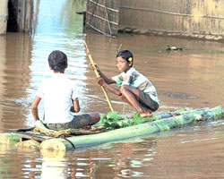 <p>A government spokesperson said a tribal villager was drowned when his boat capsized late on Saturday in south Asia’s biggest river island of Majuli in Jorhat district. “The elderly villager was on a country boat trying to get essentials for his family when it capsized. His body was recovered later,” a police official in Majuli said.<br /><br />The current wave of flooding in the past one week has left about 4,00,000 people displaced in 500-odd villages in the four districts of Lakhimpur, Dhemaji, Jorhat and Nagaon.<br /><br />“The situation continues to be grim and we have already put rescue teams in action,” said state Revenue and Rehabilitation Minister Bhumidhar Barman.<br /><br />Most of the displaced people were lodged at makeshift shelters on raised embankments. “We are providing food and medical support to the flood-hit people. We have also alerted civil, police, and paramilitary rescue teams in vulnerable areas,” Barman said.<br /><br />There have been several breaches in embankments in Dhakhukhana area in the eastern Lakhimpur district. Besides, at least two dykes have been washed away in Majuli.<br /><br />A Central Water Commission bulletin on Sunday said the Brahmaputra river and its tributaries were flowing above the danger level in at least 10 places and in full spate. An Assam government statement said a total land area of 3,000 hectares was affected.<br /><br />The 2,906-km long Brahmaputra is one of Asia’s largest rivers. Every year floods in Assam leave a trail of destruction, washing away villages, submerging paddy fields, drowning livestock and causing loss of human life and property. In 2004, more than 200 people were killed in floods in Assam — the worst flooding in recent years.<br /><br />IANS</p>