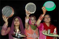<p>As per custom, women must observe a day long fast which is followed by evening rituals including sitting around the deity Gaura Mata and a small clay pitcher called karva and offering prayers. Most women were up before sunrise to take the traditional sargi, a sweet made of milk and semolina. This will be followed by a tedious fast all day with some women even avoiding water. “This is my first Karva Chauth. My mother-in-law insisted it should be a grand affair. So all of yesterday we were shopping and got henna designs done at Lajpat Nagar Market,” Anupama Verma, 27, said.<br /><br />“These days many women don't keep the fast and even I had a choice. My mother said that if I keep the fast this time I should be brave enough to follow tradition always,” Verma added. Beauty parlours were over-crowded and there was a beeline for all the popular henna artists. “I prefer getting traditional mehendi but my mother-in-law got the minimal Arabic designs. The only sore point was haggling with the artists who overcharge - it cost me Rs 150 a hand and normally it's just Rs 30,” said Kritika Sharma, a mother of two.<br /><br /></p>.<p>Intricate mehendi designs on the hands and feet, designer dresses and a new hairdo for the day were in demand. Markets were choc-a-block with shoppers making last minute purchases and going to mehendi walas and bangle sellers who also did brisk business and charged exorbitant rates. The puja preparations were ready with the traditional ritual items consisting of the Gaura Mata idol, karva (pitcher containing water), cow dung, tika, vermilion, the Bayana thali (plates) and gifts all in place. As the day wears on, women will participate in small rituals which involve circulating their Bayana thalis, containing mathris (savouries), almonds and some gifts. Songs specific to the festival will be sung in household and community gatherings. The women will have to wait for the moon to rise before they can break their fast by taking the first morsel from the hands of their husband.</p>