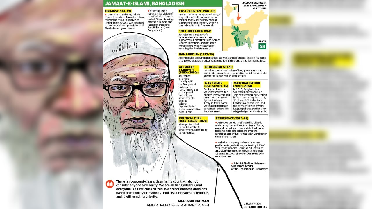 <p>From being principal collaborators in Pakistan's genocide during the Liberation Struggle of 1971, through periods of proscription and electoral exclusion, the Jamaat-e-Islami Bangladesh (JeI-BD) has come a long way. It has now emerged as the second-largest party in the Jatiya Sangsad (Parliament), winning 68 of the 297 seats declared and securing a 32% vote share in the February 12 Bangladesh elections. Another nine seats went to its alliance partners, taking the total to 77. The Jamaat’s strongest independent electoral showing before this was in 1991, when it won 18 seats and 12.2% of the vote. </p>.<p>Given JeI-BD’s sanguinary history, it is not surprising that its electoral prominence should provoke a measure of alarm. Indeed, the record of the 18 months between the collapse of the Sheikh Hasina government and the national elections is chilling. The JeI and its students' wing, Islami Chhatra Shibir (ICS), along with other Islamist extremist organisations — including Ahle Hadis Andolan Bangladesh (AHAB), Bangladesh Khelafat Majlis (BKM), Hefazat-e-Islam (HeI) and Islami Andolan Bangladesh (IAB) — essentially hijacked the students' 'revolution' and, even after Hasina’s flight, continued violent campaigns under the interim government. Their attacks particularly targeted minorities and individuals perceived to be aligned with the former regime, and extended as well to ideological rivals.</p>.<p>The JeI, moreover, anticipating a victory in the elections, sought to create a unified platform for all Islamist parties even as it launched a campaign of violent clashes with the Bangladesh Nationalist Party (BNP). JeI and BNP cadres fought continuous street battles, and partial data indicates that at least 276 JeI and BNP cadres were injured in such confrontations, and another 40 in clashes between ICS and the student organisation affiliated with BNP, Jatiotabadi Chatra Dal (JCD), in 2025. A further 128 cadres were injured in such clashes in 2026 (up to February 12). </p>.<p>It is important to recognise that the resurgence of the JeI-ICS complex, as well as other Islamist extremist formations in the country, received significant encouragement from Mohammad Yunus’ interim government. First, the ban on the JeI imposed by the Hasina government was lifted, and shortly thereafter, the Election Commission reinstated JeI's registration as a political party. Leaders and cadres in jail were released, including many convicted for heinous crimes, along with other similar offenders from various Islamist formations. Among those released was ATM Azharul Islam, who had been on death row for 14 years in a 1971 crimes-against-humanity case. He was abruptly 'acquitted' on May 27, 2025, and shortly thereafter appointed as the JeI’s Naib-e-Amir.</p>.<p>The last development is symbolic of the JeI’s sustained duplicity. The JeI's Ameer Shafiqur Rahman issued a somewhat ambivalent apology to anyone who “has ever been hurt by his party since 1947”, but those guilty of the 1971 genocide continue to hold prominent positions in the organisation. It is useful to recall that JeI’s history is drenched in blood from the very moment of the country’s birth pangs in 1971. At least nine top leaders of the JeI were convicted by the International Crimes Tribunal (ICT) for atrocities committed during the 1971 Liberation War, and at least five were executed. </p>.<p>In another development symbolising the Yunus regime's benevolence towards JeI extremists, on March 12, 2025, convicted war criminal and former JeI leader Abul Kalam Azad, alias Bachchu Razakar, who had been on the run since the ICT sentenced him to death, was allowed to return to Dhaka from Pakistan. </p>.<p>It is important to understand the role of the ecosystem created by the interim government, within which JeI-ICS and other Islamist formations thrived. Islamist radicals were given a free hand by the Yunus government after August 2024. The JeI and its allies enjoyed exceptional impunity. Further, at least 700 inmates, including convicted Islamist militants, fled from jail under the interim government — among them 70 Islamist extremists and death row convicts. Worse, 174 known criminals, including 11 top-listed offenders, gangsters and extremist group leaders, were given bail. These included Ansarullah Bangla Team (ABT) ‘chief’ Jashimuddin Rahmani; Abdus Salam Pintu (a Harkat-ul-Jihad Islami Bangladesh aide); and Abdullahil Aman Azmi and Ahmad Bin Quasem (JeI).</p>.<p>While the JeI has always maintained a formal distance from Islamist terrorist formations, it is important to emphasise that investigations in Bangladesh have reported strong recruitment overlaps between JeI-ICS networks and various jihadi groups, prominently including the Jagrata Muslim Janata Bangladesh (JMJB), the group responsible for the series of 469 bombings across 64 districts of the country in 2005, Jamaat-ul-Mujahideen Bangladesh (JMB) and its offshoot, Neo-JMB, as well as Harkat-ul-Jihad al-Islami Bangladesh (HuJI-B), and the ABT. Significant proportions of the leadership and cadres of these organisations come from the JeI-ICS recruitment pipeline.</p>.<p>Any sustained resurgence of these groups under a regime in Dhaka that seeks to accommodate Islamist extremism would constitute a significant security threat to both Bangladesh and India. During the 2005-2010 period, HuJI-B was involved in a series of joint terrorist strikes across India. The JMB and Neo-JMB have had a long presence in the Northeast, West Bengal, Bihar and Jharkhand, maintaining safe houses and bomb-making units (recall the Burdwan blast of 2014). However, Hasina’s 'zero tolerance for terrorism' policy and India’s extensive crackdown on these groups dramatically reduced the risks. Nevertheless, any ideological normalisation of JeI’s influence would lower barriers to recruitment into such militant formations.</p>.<p>It is necessary, however, to recognise a range of mitigating factors. While Je