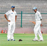 <p>On a stop-start opening day of the Ranji Trophy match between Karnataka and Saurashtra, a big rodent not only caused a brief stoppage in play but also provided some entertainment which was at a premium, apart from Robin Uthappa’s sparkling half-century, here at the Chinnaswamy stadium on a muggy Tuesday.<br /><br />The day’s play had begun two and half hours behind schedule due to damp ground conditions and the players and officials were keen to get on with the game when the rodent strayed on to the turf, holding up the game for a fair few minutes. After the players attempted unsuccessfully to chase the unwanted guest off the field, two of the ground staff, armed with a gunny bag, tried to catch the rat which managed to hoodwink them for some time. <br /><br />One of the boys became a bit too adventurous and got too close to the rat, which bit his hand. Writhing in pain, the boy ran for first aid even as his partner in the mission managed to trap the intruder. </p>