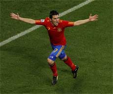 <p>Villa scored his fourth goal of the tournament in the 63rd minute, while Cristiano Ronaldo again failed to inspire Portugal.<br /><br />A trademark Spanish passing move found Andres Iniesta in the center. He flicked the ball through to Xavi Hernandez, who backheeled to Villa charging in on the left.<br /><br />The Barcelona-bound striker saw his first shot blocked by Portugal goalkeeper Eduardo, but on the rebound, he coolly slotted home with his right foot.Portugal's only defensive weakness had been on its right flank, where Ricardo Costa struggled. He was sent off for elbowing Joan Capdevila in the 89th minute, stifling a late Portuguese drive.Spain will now play Paraguay in the quarterfinals on Saturday at Ellis Park.<br /><br />Exactly two years after Spain ended a 44-year drought by winning the European Championship, the team stayed on course to become the first European titlist to add the World Cup since West Germany did it in 1974.<br /><br />Spain was about teamwork, and it showed from the start. Fernando Torres and Villa immediately moved down the left, looking to exploit Portugal's weakness on right back. Within the first seven minutes, Eduardo had to make three quality saves to keep Portugal in the game on angled shots from Spain's two strikers.<br /><br />Yet strangely enough, Spain did not continue to pound Portugal's weak right side and instead settled for the intricate passing game through the center it has become famous for.<br />Once Portugal's defense settled, it proved why it has one of the best in the world, conceding only one goal in its last 12 matches. It clogged play in the center and Spain got frustrated to the extent that it was reduced to long-range attempts Gerard Pique.<br />Portugal's problem was that Ronaldo was yet again off form. Right before the opening whistle, he looked up at the night sky and started pleading with his arms outstretched, almost begging to finally make his mark on a huge game.The heavens didn't respond.</p>