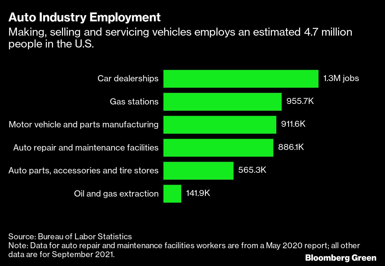 <p><em><strong>By Ari Natter and Keith Laing</strong></em></p>.<p>An acrid smell hangs in the air at Trenton Forging Co. on the outskirts of Detroit as a 4,500-pound hammer slams a bar of red hot steel with enough force to shake the building.<br />A worker uses tongs to position the piece, heated to 2,200 degrees, under the hammer, then onto a conveyor belt. The process is repeated 7,000 times a day at the 90-employee plant, resulting in fuel rails that feed gasoline to injectors.</p>.<p>But the days of forging fuel rails is numbered. They’re among hundreds of parts in internal combustion engines that won’t be needed when the country transitions to electric vehicles, a fact that isn’t lost on Dane Moxlow, the vice president of Trenton Forging, whose grandfather started the business in 1967.</p>.<p>“This might go away completely,” Moxlow, 33, said as a pair of workers behind him inspected a freshly made rail. “Is it something we worry about? Yeah. But it’s also something we plan for.”</p>.<p><strong>Also Read | <a href="https://www.deccanherald.com/business/dh-wheels/as-tesla-foxconn-eye-indias-ev-space-here-are-the-major-players-1042943.html" target="_blank">As Tesla, Foxconn eye India's EV space, here are the major players</a></strong></p>.<p>Across the country, thousands of companies such as Trenton Forging are warily eyeing a future of electric vehicles that contain a fraction of the parts of their gasoline-powered counterparts and require less servicing and no fossil fuels or corn-based ethanol. It’s a transition that will be felt well beyond Detroit, as millions of workers at repair shops, gas stations, oil fields and farms find their jobs affected by an economic dislocation of historic proportions.</p>.<p>“Anybody who thinks this transition is going to go smoothly is fooling themselves,” said Michael Robinet, executive director of automotive advisory services for consulting firm IHS Markit.</p>.<p>Making, selling and servicing vehicles employ an estimated 4.7 million people in the US, according to the Bureau of Labor Statistics. Some of the jobs won’t go away, of course — there will still be a need for dealerships and tire shops.</p>.<p>Making the massive batteries that line the bottom of electric cars promises to employ thousands. But where a conventional car’s engine and transmission have hundreds of parts, some electric-vehicle powertrains have as few as 17, according to the Congressional Research Service. That doesn’t take into account the radiators, fuel tanks or exhaust systems that electric vehicles don’t need. Once operating, an electric car has no spark plugs or oil that need changing or mufflers that wear out. And with so few moving parts, service stations could be relegated to changing tires and windshield wipers.</p>.<p>Conventional cars will probably remain on the road for years, softening the blow for repair shops and other affiliated industries. But with an average lifespan of 12 years, the trend lines for gasoline-powered vehicles will be heading down.</p>.<p>The shift will reduce demand for oil nearly by 4.7 million barrels a day by 2040 in the US alone, according to projections by BloombergNEF. That’s about 26 per cent of US consumption, roughly equivalent to the amount that Germany and Brazil combined consumed daily in 2020. Less gasoline being sold also means the need for ethanol, which is blended into motor fuels and consumes a third of the US corn crop, will also fall.</p>.<p>If the story of US economic history is one of constant creative destruction — as gasoline engines displaced steam, plane travel trumped trains, plastic ate into steel demand, imported goods idled US factories — the coming shift is still remarkable in its scope.</p>.<p>“It’s a disruption that people cannot appreciate,” said Paul Eichenberg, managing director of Paul Eichenberg Strategic Consulting. “Truly the engine and transmission becomes the buggy whip of the 21st century. But if you look at the other industries, it will have a huge impact.”</p>.<p>That future is fast approaching. General Motors Co. has vowed to sell only zero-emissions models by 2035. Ford Motor Co. said it expects 40 per cent of its global vehicle sales volume to be electric by 2030 and Stellantis NV, the successor to Fiat Chrysler, has said it is targeting over 70 per cent of sales in Europe and over 40 per cent in the US to be “low emission vehicles,” meaning either electric or hybrid, by 2030.</p>.<p>The Biden administration is enthusiastically encouraging the transition, which it sees as a key to combating climate change. It is proposing an array of incentives and has ordered the federal government to electrify its fleet. Transportation is responsible for about a third of the greenhouse-gas emissions in the US, making it the largest single sector, according to the Environmental Protection Agency.</p>.<p>“The future of the American auto industry is electric,” President Joe Biden said in front of a bank of electric vehicles on the White House lawn in August. He then signed an executive order setting a goal of having half of all vehicles sold in the US be emission-free by the end of the decade. China, he said, is winning the race to make electric vehicles and the US must catch up.</p>.<p>In many ways, the US, where only 2 per cent of vehicles sold are electric, is a laggard. France plans to ban internal combustion engines in 2030, and China and Britain will do so by 2040. India says it is setting an “aspirational target” of all-electric sales by 2030.</p>.<p>The United Auto Workers union, seeing the handwriting on the wall, is gearing up for a fight over who gets to make the batteries that power the vehicles, said Bernie Ricke, the silver-haired president of Local 600, which represents workers at the Ford plant where the F-150 pickup truck is made.</p>.<p>“You can like it or not like it — it’s coming,” said Ricke, during an interview from his office 